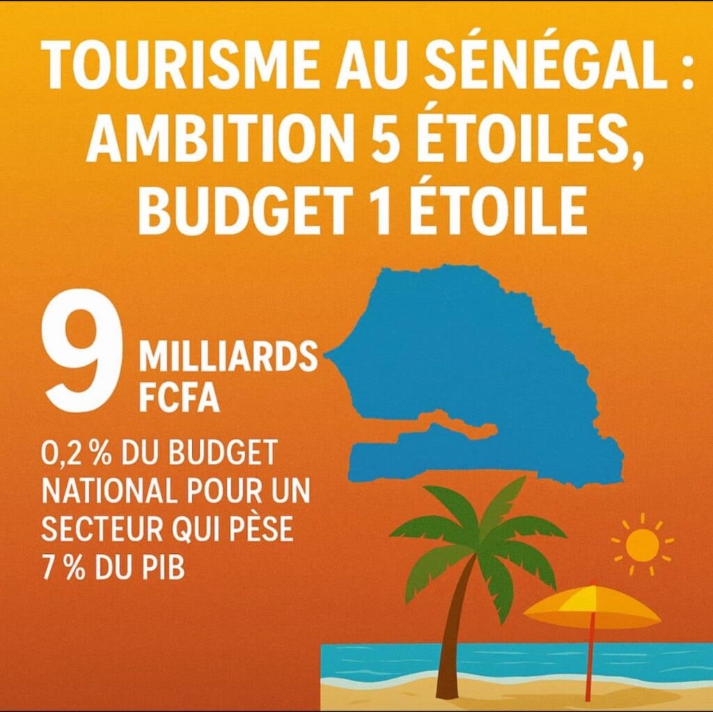 Tourisme au Sénégal : Ambition 5 étoiles, Budget 1 étoile 9 milliards FCFA. C’est tout ce que le Sénégal consacre au tourisme en 2026. 0,2 % du budget national pour un secteur qui : Pèse 7 % du PIB Emploie 150 000 personnes, dont 60 000 femmes Constitue la deuxième source de devises du pays Il faut regarder dans le document officiel de budget du ministère des Finances, aucun nouveau projet touristique mature n’est inscrit. Une absence de vision qui freine le moteur d’emplois et de transformation économique qu’est le tourisme.