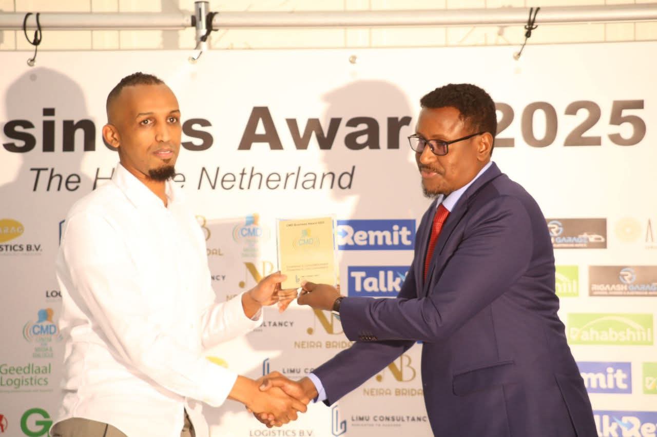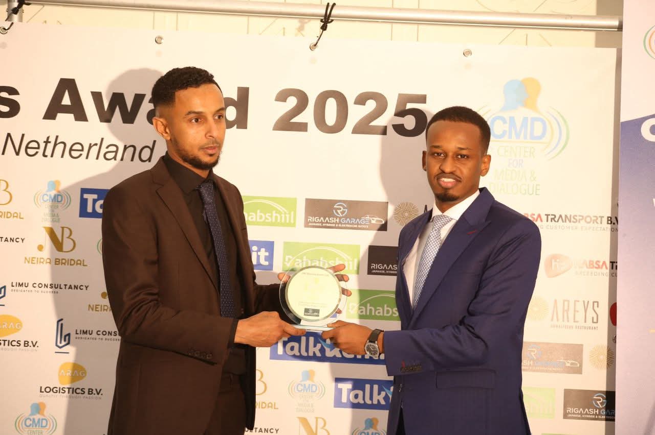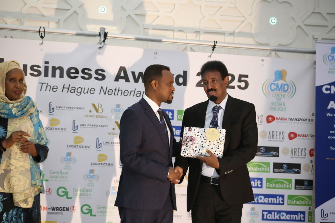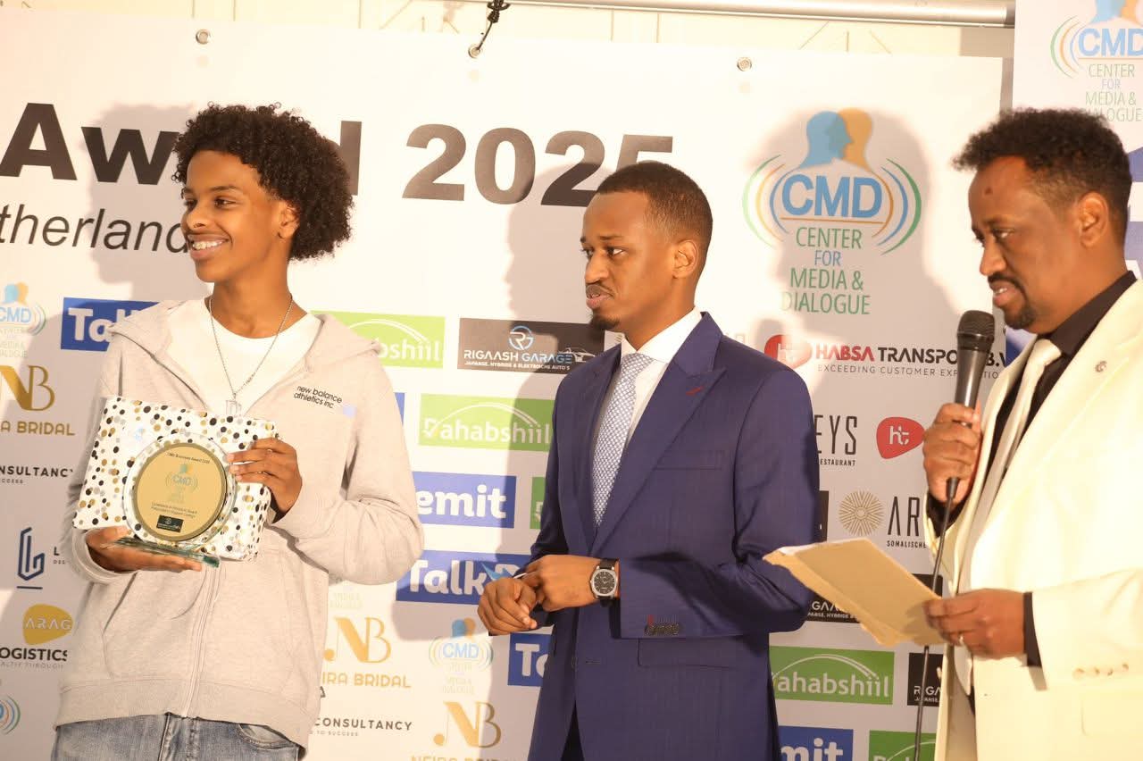 The hague(SONNA):-Wasiir ku-xigeenka Wasaaradda Warfaafinta, Dhaqanka iyo Dalxiiska Xukuumadda Federaalka Soomaaliya, Mudane Cabdiraxmaan Yuusuf Cumar (Al-Cadaala), iyo wafdi uu hoggaaminayo, ayaa magaalada The Hague ee dalka Netherlands kaga qeyb galay xafladda sanadlaha ah ee CMD Awards.